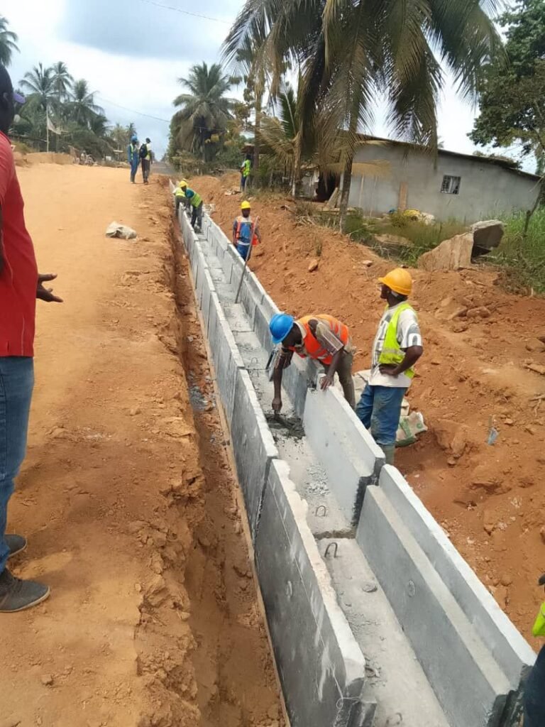 L’entreprise est bien mobilisée sur le terrain et les principales activités en cours à date concernent aussi bien la pose des éléments pré-fabriqués constitutifs des dalots et caniveaux prévus dans le contrat et la préparation de la mise en forme de la plateforme.