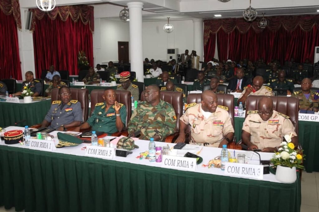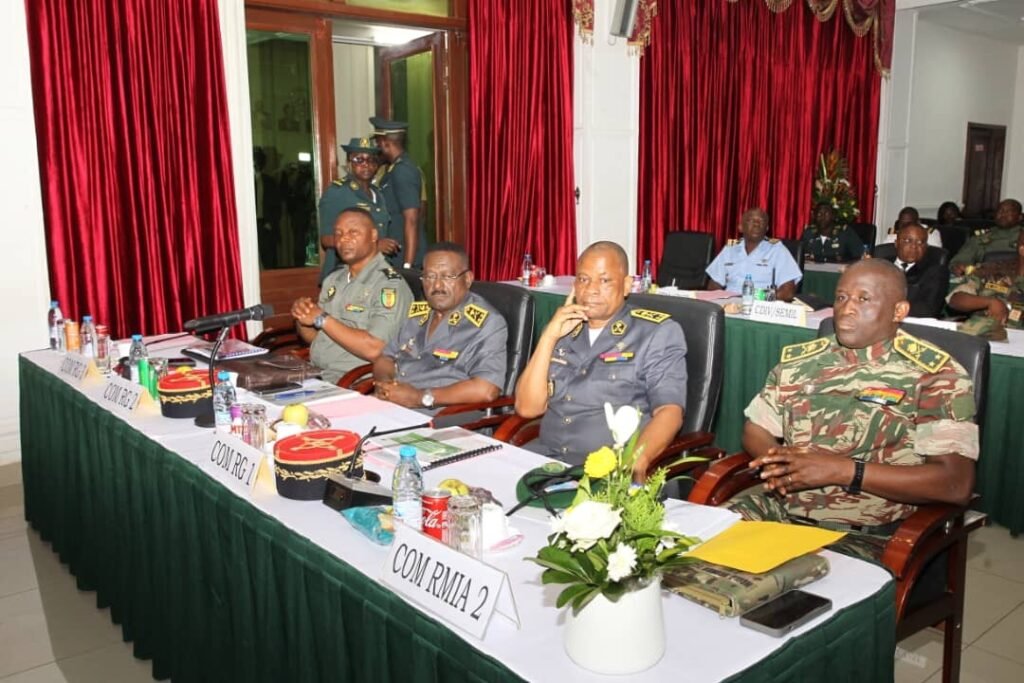 Il était question pour le MINDEF les deux Secrétaires d’État auprès du Ministre de la Défense, le Haut Commandement Militaire élargi aux Commandants Territoriaux des Régions Militaires Interarmées et Régions de Gendarmerie sous la conduite du Général de Corps d’Armée, Chef d’État-Major des Armées, ainsi que quelques invités spéciaux de certaines structures d’examiner la situation sécuritaire face au contexte actuel de notre pays notamment l’encadrement sécuritaire de la prochaine Élection des Conseillers Régionaux le 30 novembre 2025, le prochain Recensement Général de la Population et de l’Habitat ainsi que le Recensement de l’Agriculture et de l’Élevage 2025-2026.