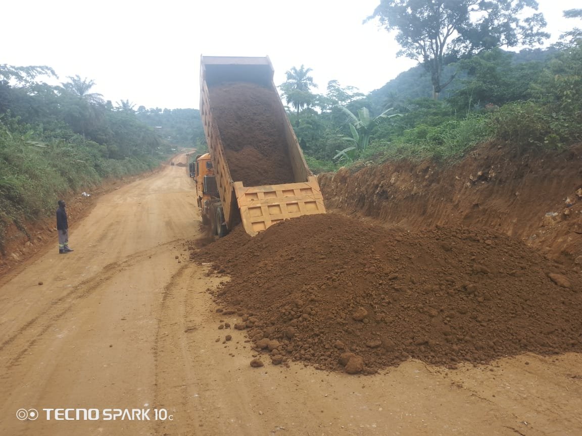 Pour relever la plateforme, les travaux d’élargissement de la chaussée et de dressage des fossés en terre ont été exécutés. Sur un tout autre plan, l’entreprise effectue des travaux de rechargement en préparation à la construction des fossés bétonnés. Malgré les premières pluies enregistrées, la circulation reste fluide sur l’ensemble de l’itinéraire, grâce aux mesures anticipatives mises en œuvre. Toutefois la section du tunnel fait l’objet d’une attention en raison de contraintes logistiques liées à l’éloignement des zones d’approvisionnement en matériaux latéritiques.