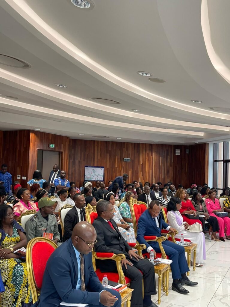 << Il nous a été donné d’échanger sur des discriminations positives de droit à la justice euh en faveur des femmes au ministère des travaux publics. Le but étant bien-sûr de nous allier à la question qui est liée à la promotion des politiques publiques en faveur des femmes et surtout de favoriser l’expression des compétences féminines dans un environnement qui est prédisposé ou bien en faveur des hommes. Nous pouvons dire que nous avons été satisfaits notamment en ce qui concerne la participation des personnels, je ne voudrais pas seulement dire des femmes en ce qui concerne également la qualité des panélistes présents, les actions ont été abordées et nous pensons que nous avons amorcé la construction d’un plaidoyer qui sera bénéfique pour les femmes et actuellement tout la tout est entre leurs mains et notre administration notre notre hiérarchie est véritablement disposée à accompagner les femmes dans l’expression de leurs compétences pour une représentativité un peu plus améliorée dans les postes de responsabilité et les différentes fonctions du ministère des travaux publics. C’est justement à cause de ces facteurs là que les pouvoirs publics encouragent la participation des femmes. C’est une participation qui doit se faire ressentir dans des instances comme ceux d’aujourd’hui et au quotidien dans le travail. Nous allons poursuivre évidemment avec l’appui de la haute hiérarchie. Nous allons poursuivre ce combat c’est-à-dire celui qui consiste à amener les femmes là où elles doivent s’exprimer pour qu’elles soient plus visibles >> a renseignée madame le Conseiller Technique.