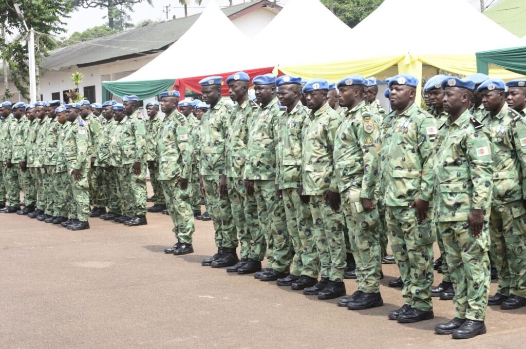 Une cérémonie riche en sons et couleurs au cours de laquelle le membre du gouvernement, au nom du Président de la République, a salué la bravoure de ces vaillants soldats qui ont donné le meilleur d’eux-mêmes en terre Centrafricaine. Une mission qui selon le ministre de la Défense, n’a nullement été un long fleuve tranquille. Le MINDEF a par la suite félicité leur professionnalisme et leur sens élevé du devoir qui a été assuré avec efficacité la sécurisation des zones placées sous leur responsabilité, mené des actions civilo-militaires à fort impact social, et fait la démonstration, en toute circonstance, de la rigueur disciplinaire propre aux Forces de Défense camerounaises. << Mesdames, Messieurs les Casques Bleus de retour de la MINUSCA, votre mission n’a nullement été un long fleuve tranquille. Elle s’est déroulée dans un environnement opérationnel complexe, marqué par des menaces réelles, des conditions de vie rudes et diverses contraintes. Pourtant, face à tous ces périls et dangers, vous êtes demeurés dignes, fidèles à votre serment et résolument loyaux à vos engagements. En un mot, vous avez porté haut les couleurs de la République, consolidant l’image d’un Cameroun crédible, responsable et solidaire des pays frères en difficulté. Au nom du Haut Commandement, je vous adresse les félicitations les plus appuyées du Chef de l’État, Chef des Forces Armées, pour le courage avec lequel vous vous êtes acquittés de votre mandat. Vos prestations ont été unanimement saluées tant par les autorités onusiennes que par les communautés sociales bénéficiaires, qui ont vu en vous des protecteurs dévoués et attentionnés. Au nom du Haut Commandement, nous vous adressons nos félicitations les plus appuyées du Chef de l’État, Chef des Forces Armées, pour le courage avec lequel vous vous êtes acquittés de votre mandat. Depuis 2008, plus de 12 000 militaires et gendarmes camerounais ont servi comme Casques bleus, plaçant notre pays parmi les vingt premiers contributeurs de troupes au monde>>.