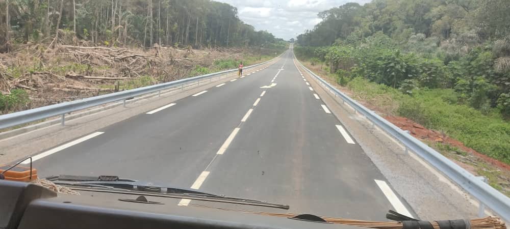 L’axe routier ouvert solennellement à la circulation et qui concerne une section de la Nationale 21 et une section de route régionale, reliée à la Nationale 10 Yaoundé Ayos Bertoua est long de 38,242 km, avec en plus, les voiries des villes d’Abong-Mbang 6,152 km et Messamena 5 km pour un total cumulé de 49,393 km construits.