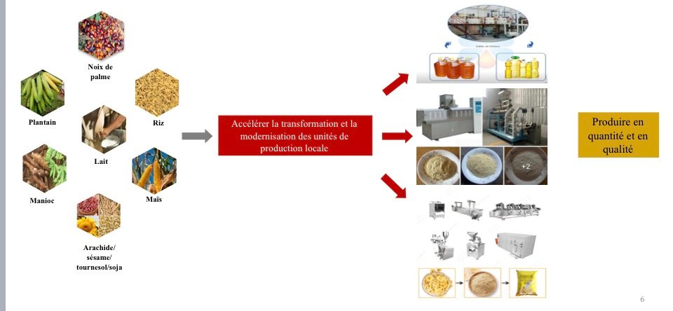 Au regard des objectifs poursuivis, il est nécessaire de mobiliser davantage les efforts et les moyens adéquats pour accélérer la transformation et la modernisation du tissu productif, afin de mettre sur les marchés des produits en quantité et en qualité mais surtout compétitifs, question d’impulser une nouvelle dynamique d’industrialisation portée par l’installation des petites et moyennes unités de transformation au niveau des collectivités territoriales décentralisées.