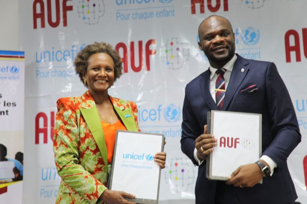 C’est ce qui soutend le café-presse couplée à la signature du Mémorandum d’Entente (MoU) signé le 30 mars 2026 à Yaoundé à l’effet d’établir un cadre général de collaboration stratégique entre l’UNICEF-Cameroun représenté par Nadine Perrault et l’AUF représenté par Jean Luc Konan, Directeur Régional.