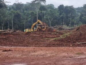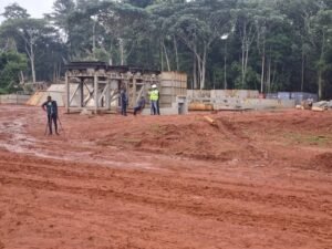 Sur le site, la mise sur pied de l’usine évolue. « «Ici, nous nous trouvons sur le site de l’usine. Elle sera construite sur environ cinq hectares. Derrière nous, le mur de soutènement qui va servir de point de chute à tout le minerai qui sera acheminé », a indiqué Jeff Fouda, responsable de l’engagement communautaire.