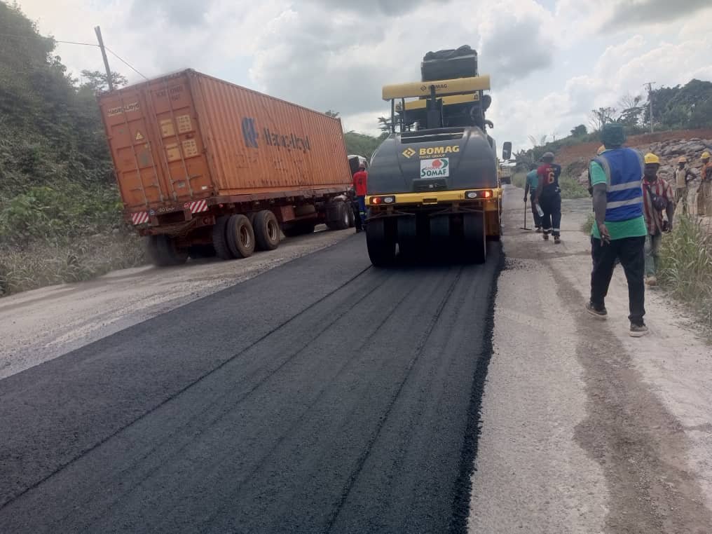 Mardi 30 décembre 2025, des engins de l’entreprise SOMAF se déploient sur la section Edéa-pont Bivouba, à l’effet de boucher des nids de poule, traiter des zones critiques et de répandre une couche de béton bitumineux pour fluidifier la circulation de centaines de gros porteurs qui vont et viennent dans les deux sens. Ces mouvements devenus réguliers sur cet axe fortement dégradé et en attente de réhabilitation, dépendent malheureusement des ressources de l’entreprise.